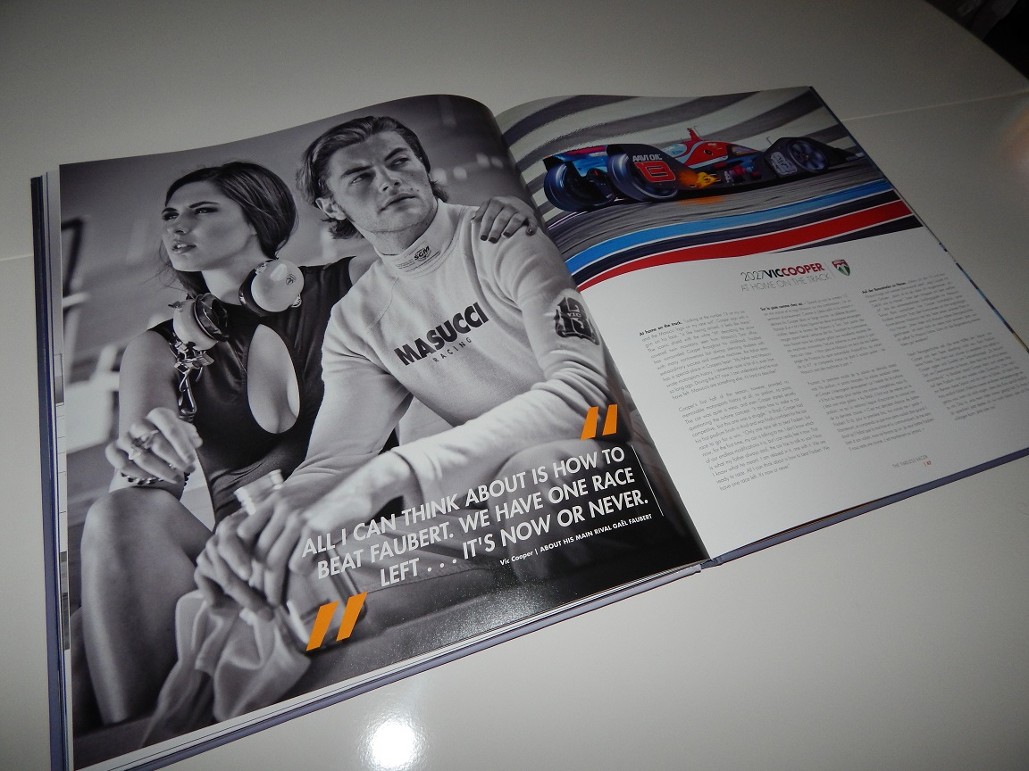 Without giving too much away, the book is based around a racing driver, Vic Cooper, the son of Brit Jay McQuade who was killed whilst racing for Masucci during an endurance race, causing the Masucci team to pull out of racing. Vic, however, can travel through time and in this first of a series of books we can follow Vic’s travels to look back at the history of the Masucci racers, and set up a fantastic 2027 season where Vic brings the Masucci name back to the track to take on the establishment.